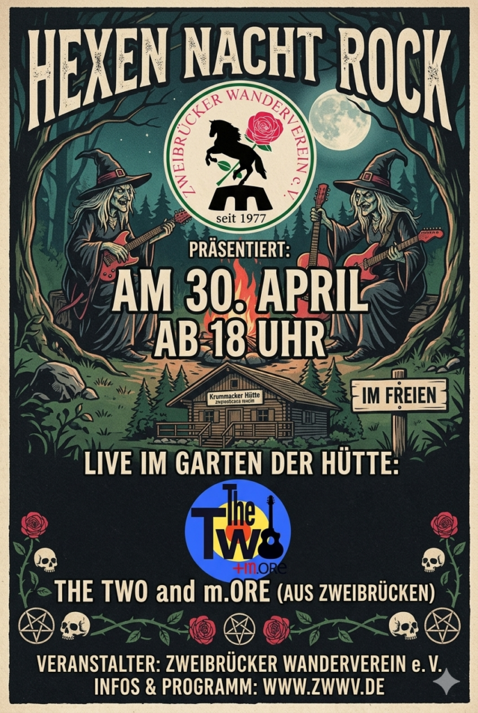 Der Zweibrücker Wanderverein lädt ein zur OPEN AIR- Hexen-Nacht-Party, am Sonntag den 30. April. Es tritt…